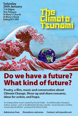 Ealing Friends of the Earth member Denis Postle, veteran documentary film director, therapist, writer and musician. has produced a new video in his series of films about the climate emergency. The Climate Tsunami shows the Earth telling us where we are with climate heating and where it might be taking us.