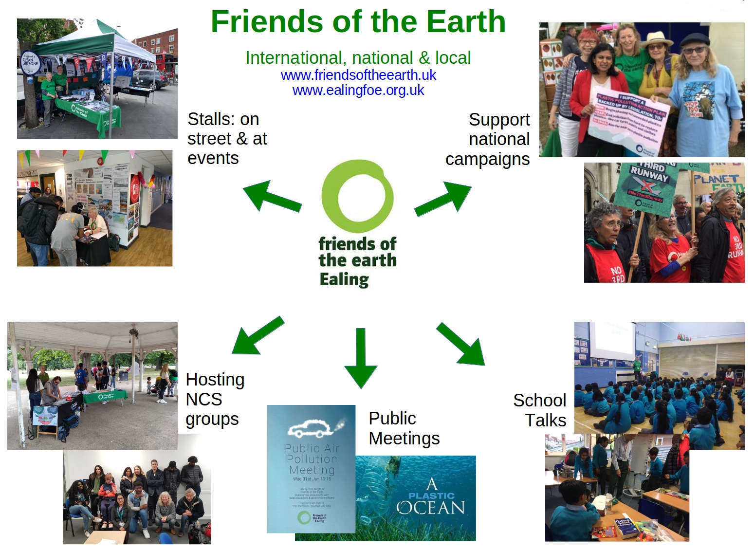 Ealing Friends of the Earth (EFoE) is the local group of Friends of the Earth UK for the London borough of Ealing. At the local level we are all volunteers, but we have the support of paid staff in the FoE-UK office in London. We’ve also been around for a long time – some decades now.
