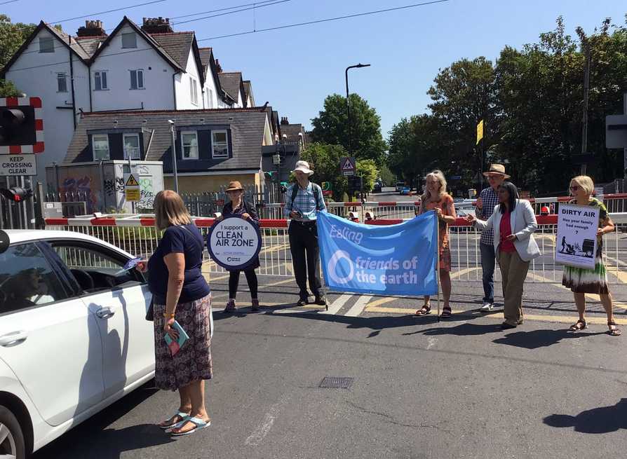 Ealing Friends of the Earth said: “Unfortunately London’s air is pretty filthy, even if the pollution is not visible to the eye. The World Health Organization guidelines state that annual average concentrations of PM2.5 (particulate matter of 2.5 micrometres or less in diameter) should not exceed 5 µg/m3. We checked the level on Churchfield Road during the protest and got readings between 25 and 30 µg/m3. That’s five to six times over the WHO limit.”