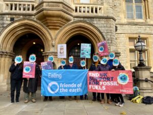 Our main role here is to back FoE-UK’s national campaigns. So we might request a meeting with one of our Ealing MPs to ask them to support one of those campaigns. FoE-UK keep us informed about their campaigns and offer support, materials and training to help us participate.